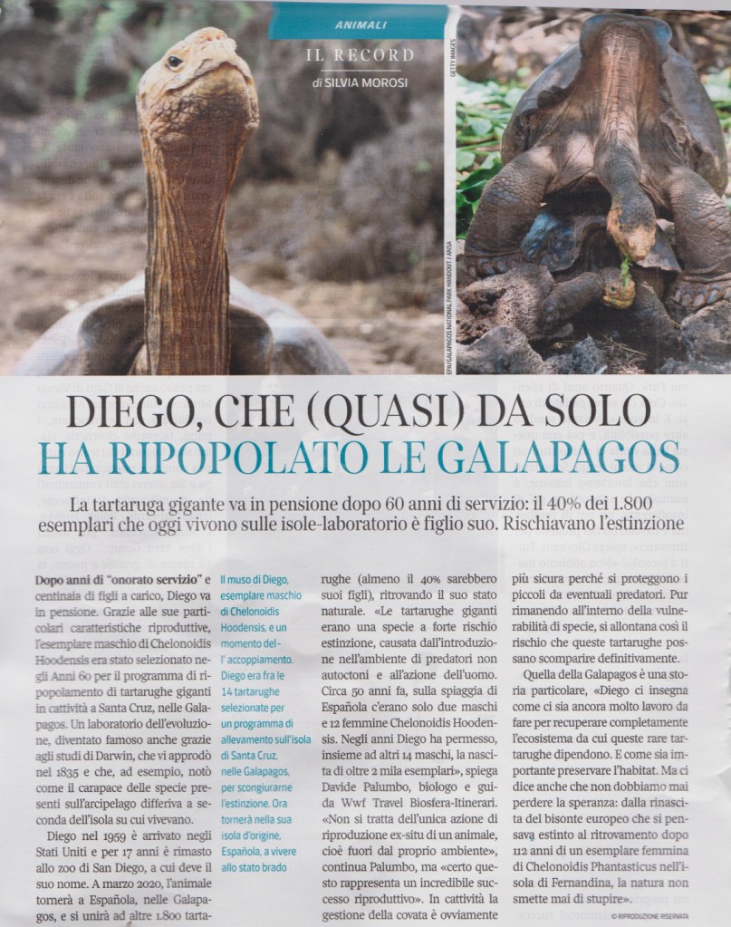 Diego, la tartaruga gigante che ha ripopolato le Galapagos, articolo di Silvia Morosi in sette.corriere.it