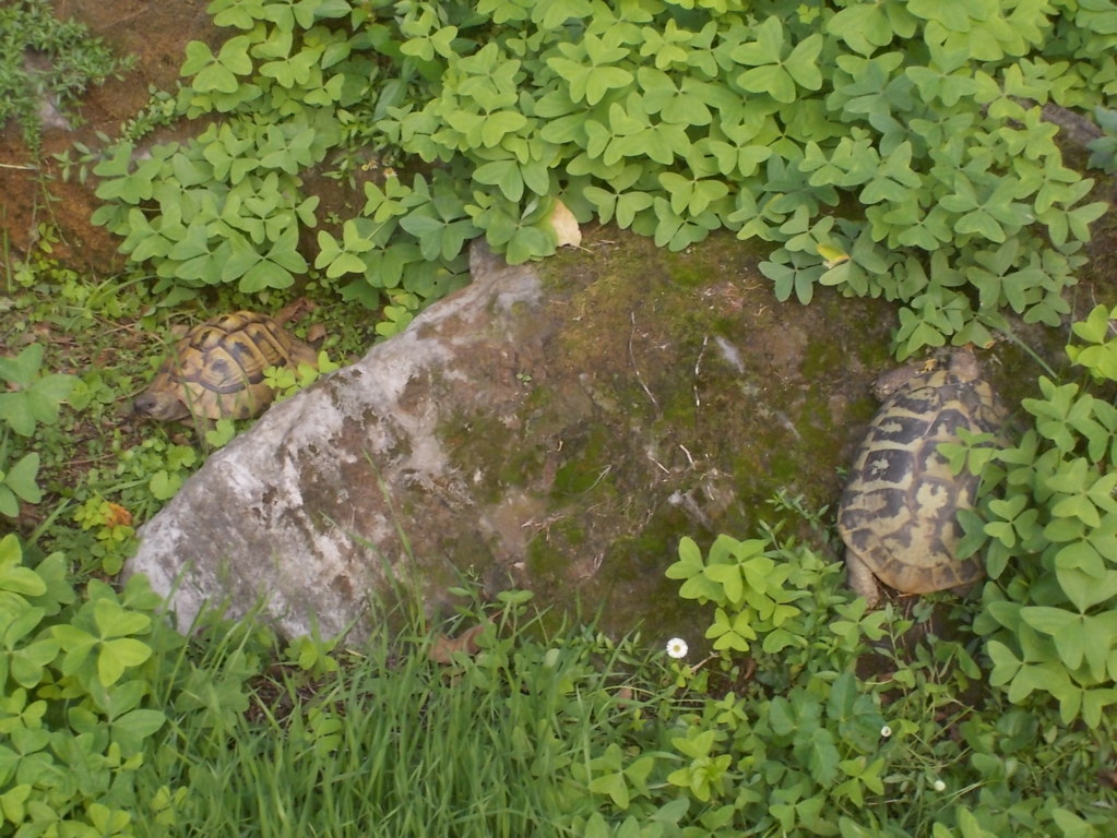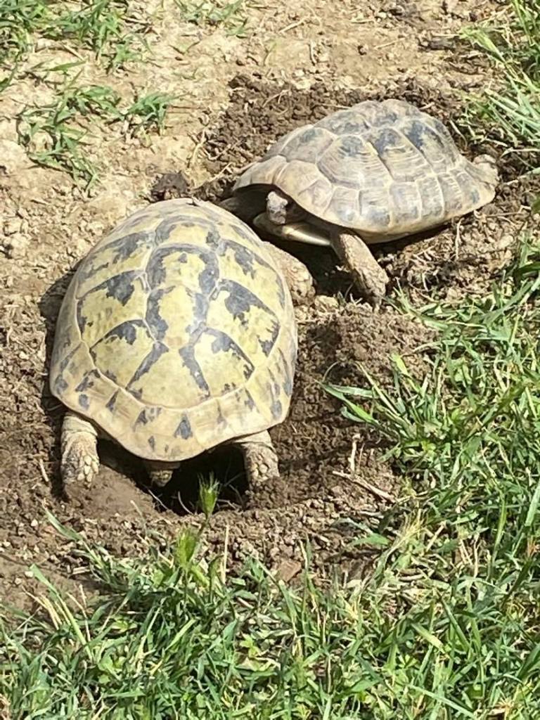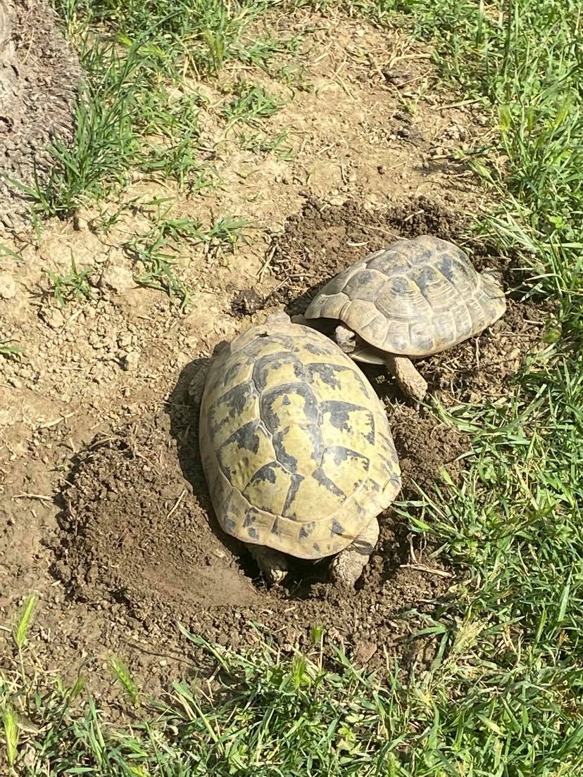 Sopra ci sono invece Minerva e Demetra che hanno subito adottato un belcumulone di terra ancora leggermente umido per la pioggia dell’altro ieri. Praticamente sono riuscita a vedere solo minerva perchè sia il maschio già lì, sia demetra…